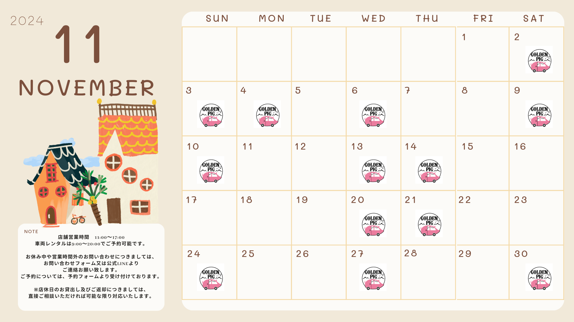 • 11月24日(日)貸渡・返却のみ対応