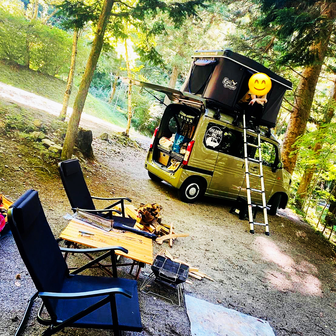 無事にキャンプできました!到着時はめちゃめちゃ晴れてルーフテントも楽しめました。
