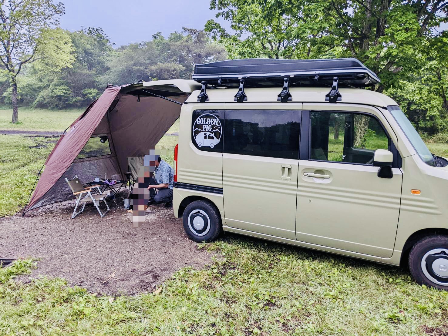 車に連結できるタープもレンタルさせていただいたので、さほど影響なくキャンプを楽しめました。次はお天気が良い時に再チャレンジさせていただきたいと思います。