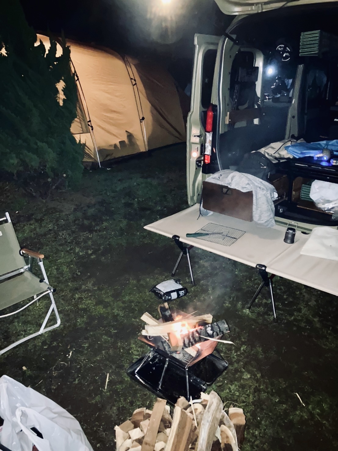 海からも近く気持ちの良い潮風と、夜には波の音を聞きながら、目的の一つだった焚き火で秋のキャンプを満喫されたそうです。