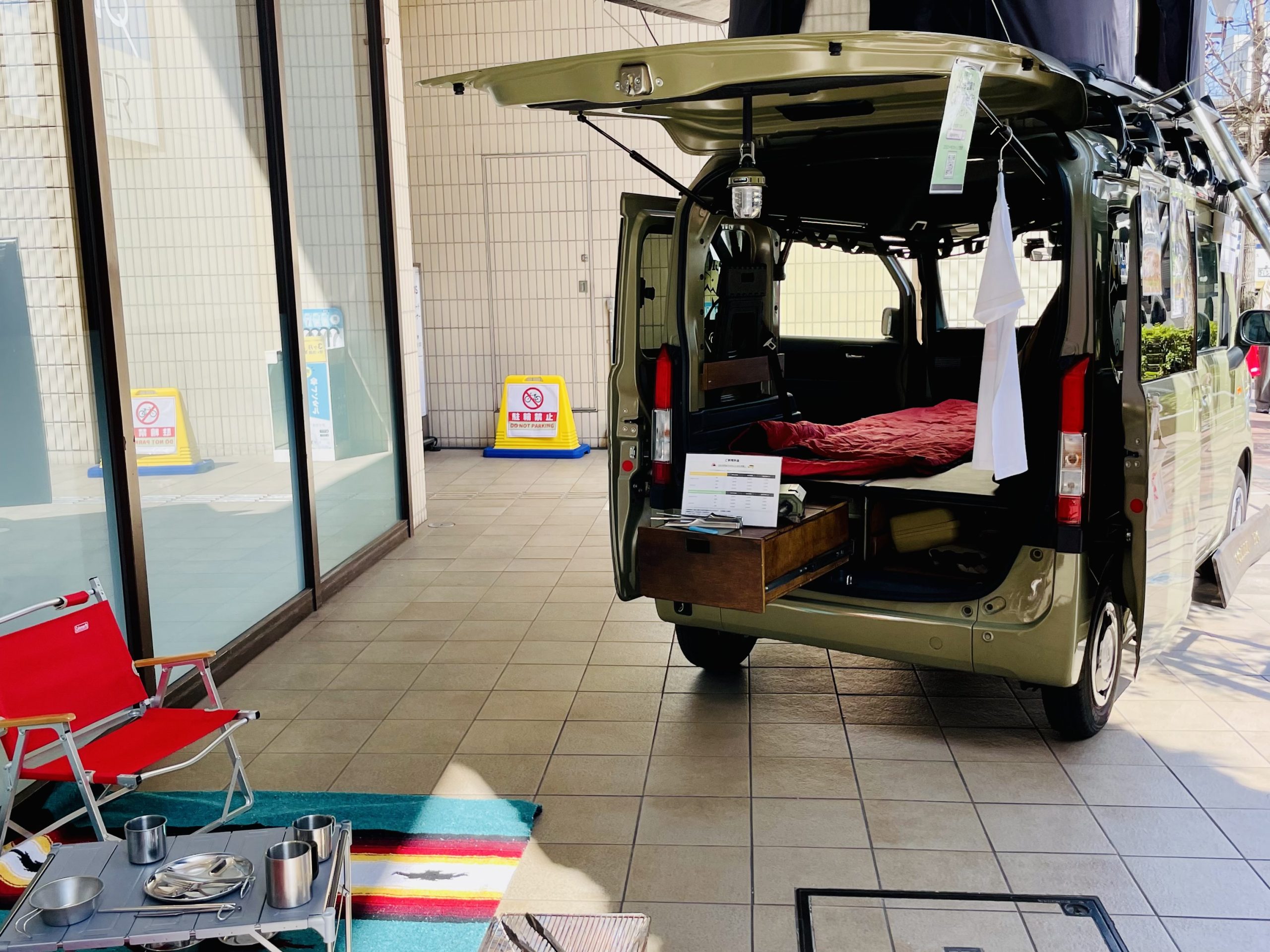 2日間で車中泊仕様のレンタル軽キャンピングカーやアウトドアに関連する製品を、見て・触れて、その魅力を存分に体感していただく機会を作ることができました。