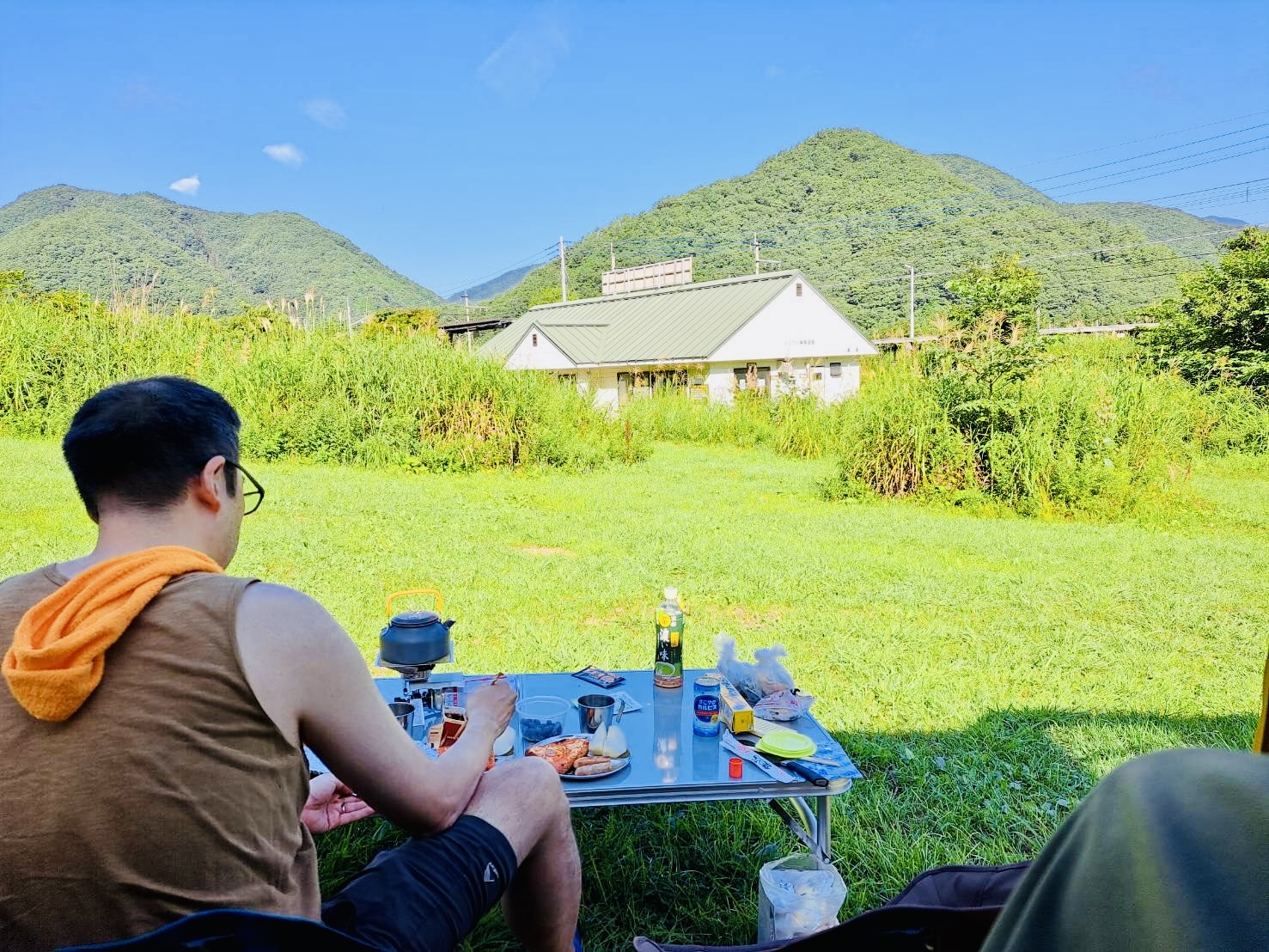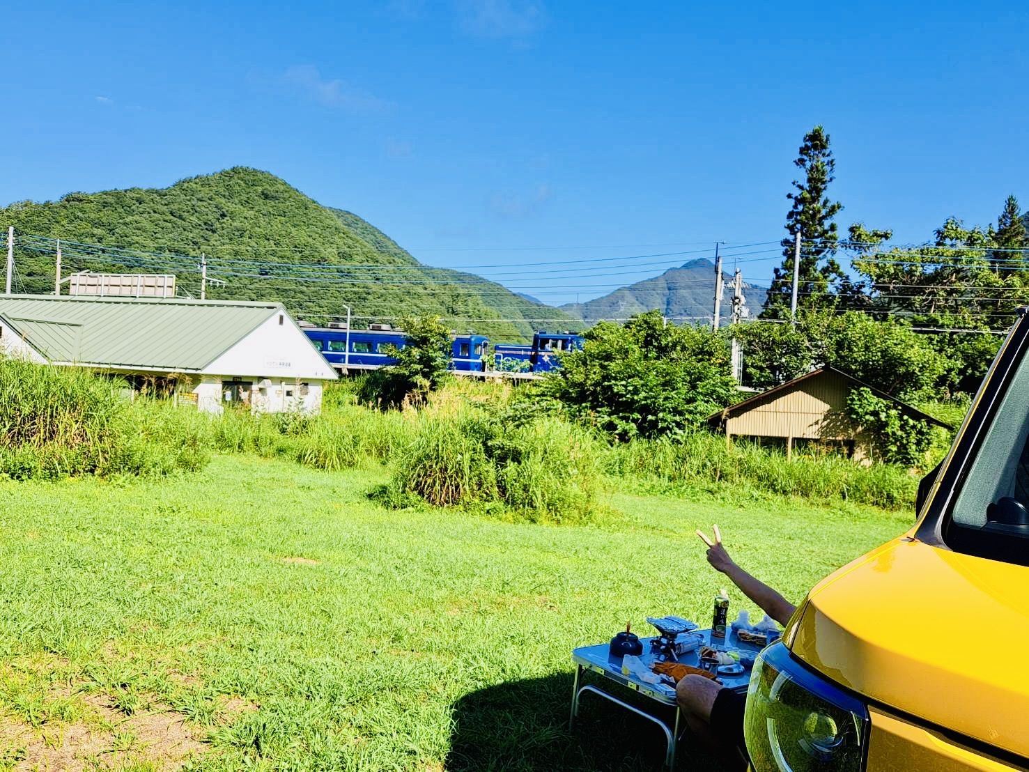 バーベキューをしながらときおり通るローカル線を眺められたりも。