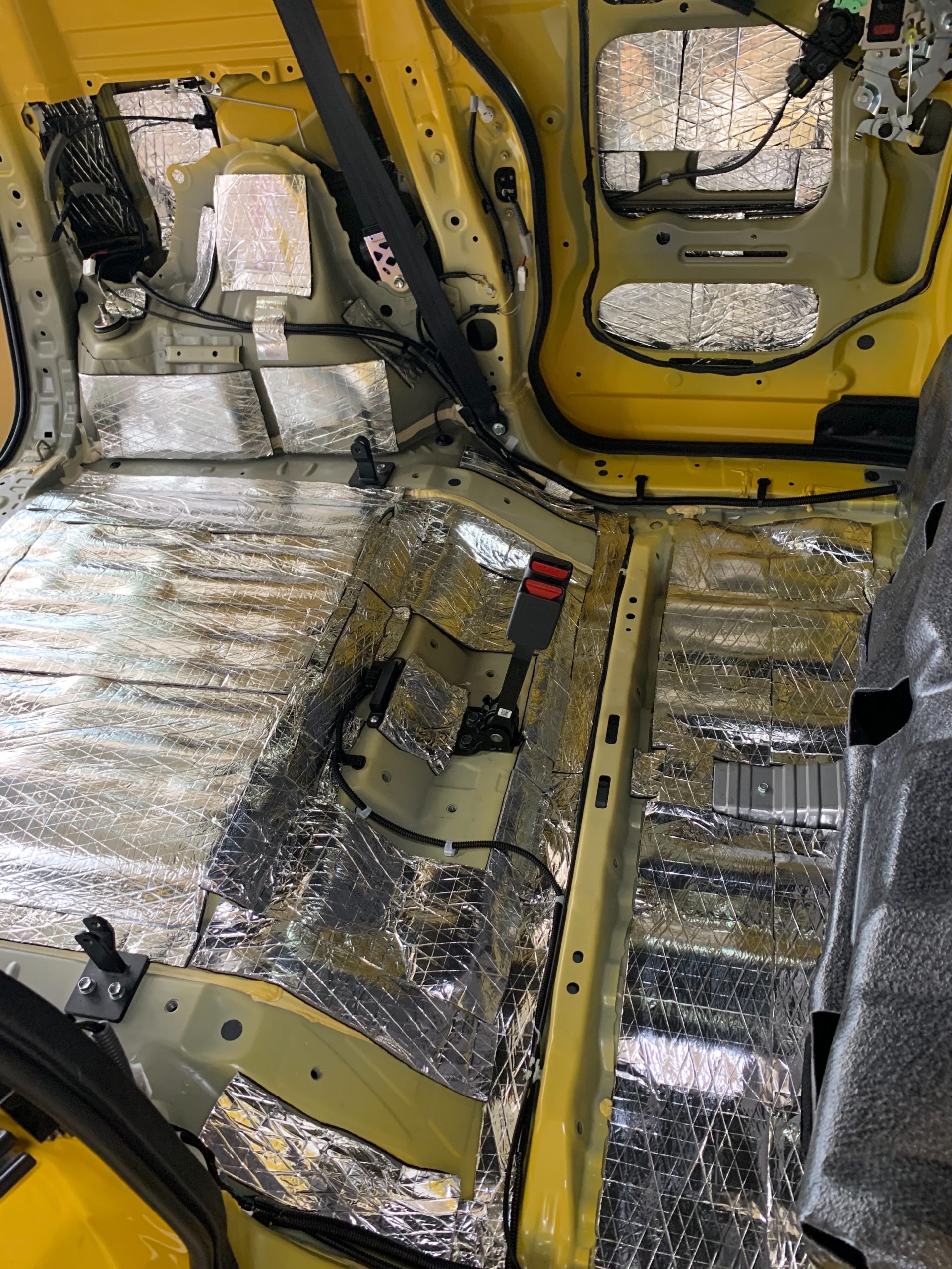 ゴールデンピッグの車中泊仕様レンタカーは、デッドニング(防音・断熱)加工済み。