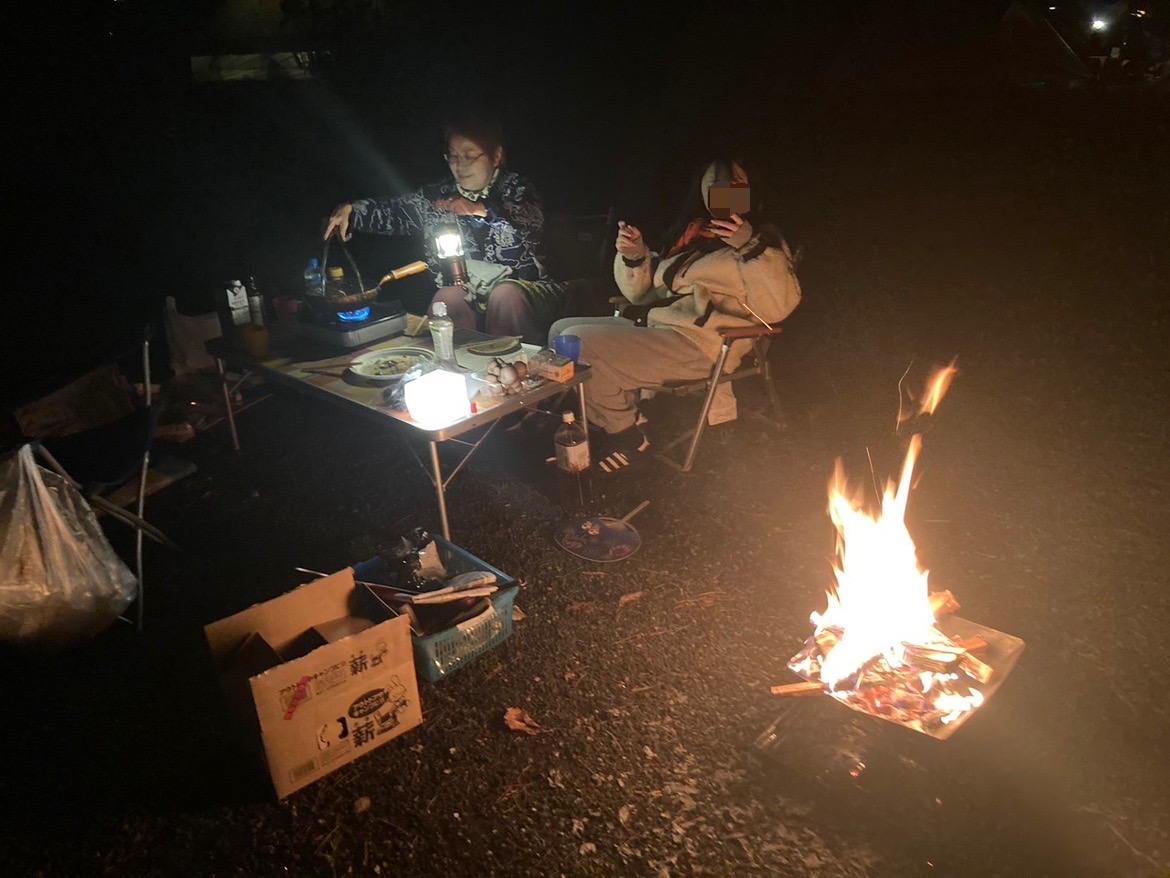10月の嬬恋は夜は結構寒く、借りていった焚き火セットが大活躍でした。
