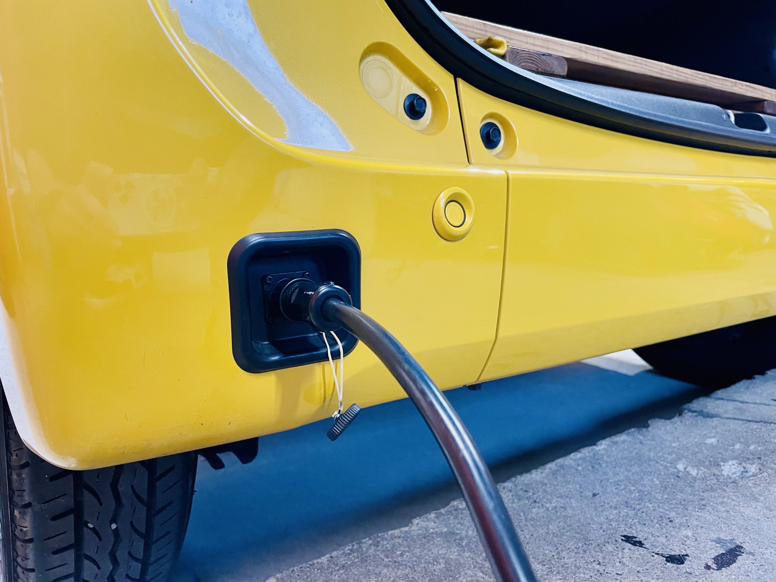 ゴールデンピッグの車中泊仕様N-VANは、「外部電源入力キット」を搭載してますので、外部接続用ケーブルと外部電源設備を接続することで、エンジン停止中でも車内にAC100Vを引き込めます。