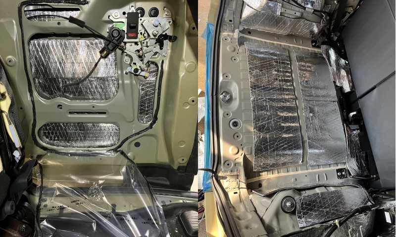 運転席・助手席のドアへの施工です。断熱性だけでなく走行中のロードノイズの軽減も期待できます。