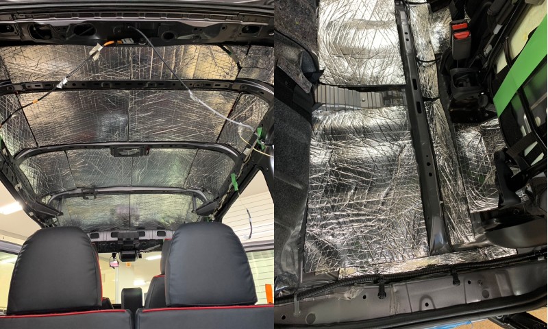 これによってルーフの雨音軽減はもちろん、夏の暑さが大幅に低減できますので、より快適な車内空間になります。